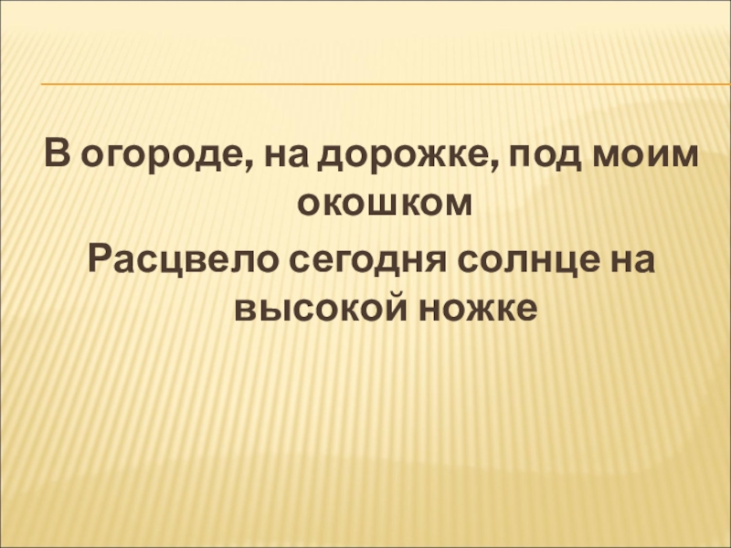 В огороде, на дорожке, под моим окошкомРасцвело сегодня солнце на высокой ножке