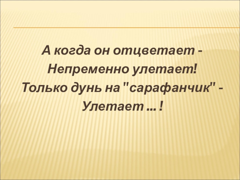 А когда он отцветает -Непременно улетает!Только дунь на