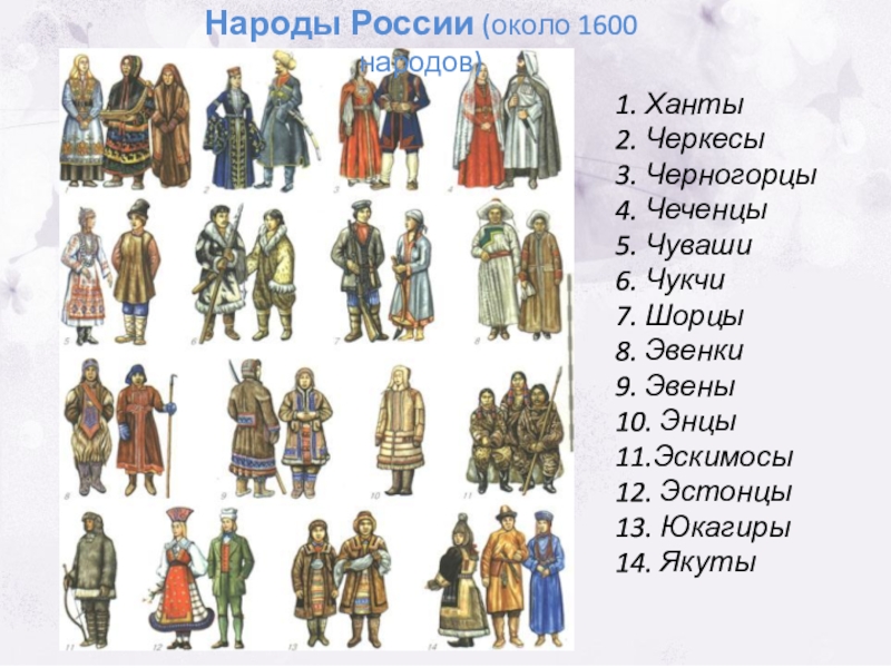 Народы России (около 1600 народов)