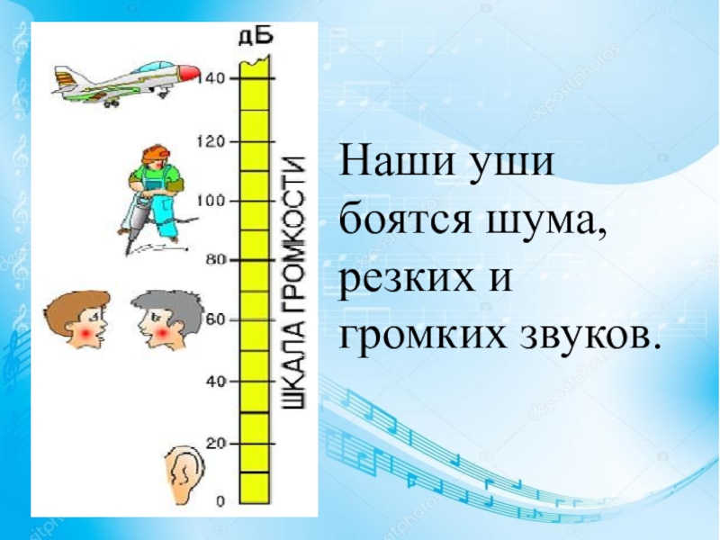 Слайд 6Наши уши боятся шума, резких и громких звуков.