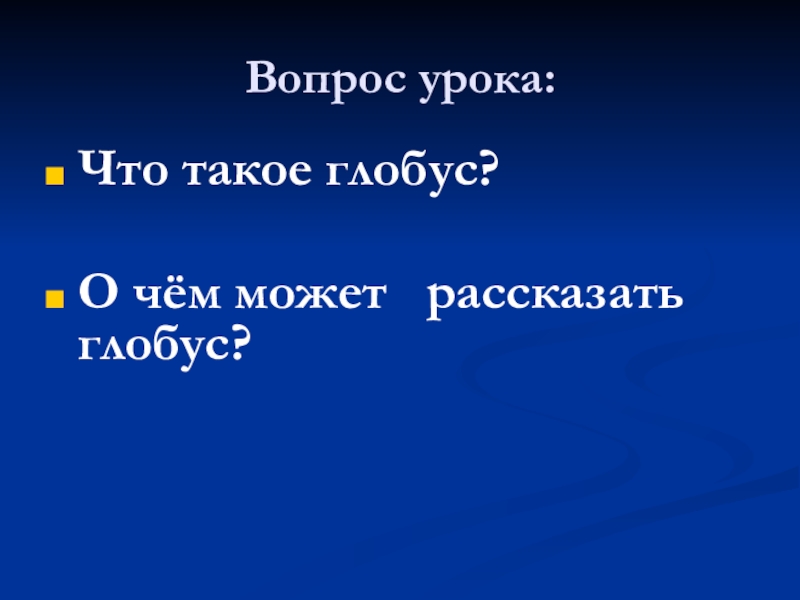 Вопрос урока:Что такое глобус?      О чём может  рассказать глобус?