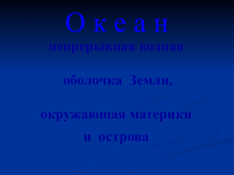 О к е а н непрерывная водная оболочка Земли, окружающая материки и острова