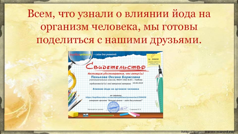 Это сайт презентаций, где можно хранить и обмениваться своими презентациями, докладами, проектами, шаблонами в формате PowerPoint с другими пользователями. Мы помогаем школьникам, студентам, учителям, преподавателям хранить и обмениваться учебными материалами.