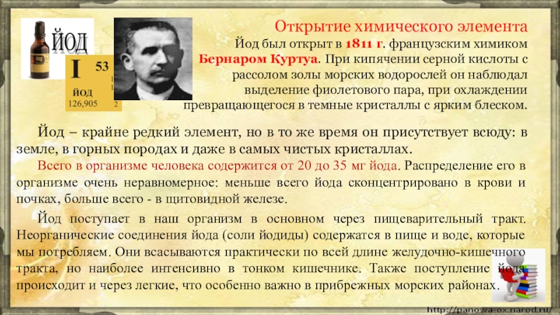 Йод – крайне редкий элемент, но в то же время он присутствует всюду: в земле, в горных породах и даже в самых чистых кристаллах.