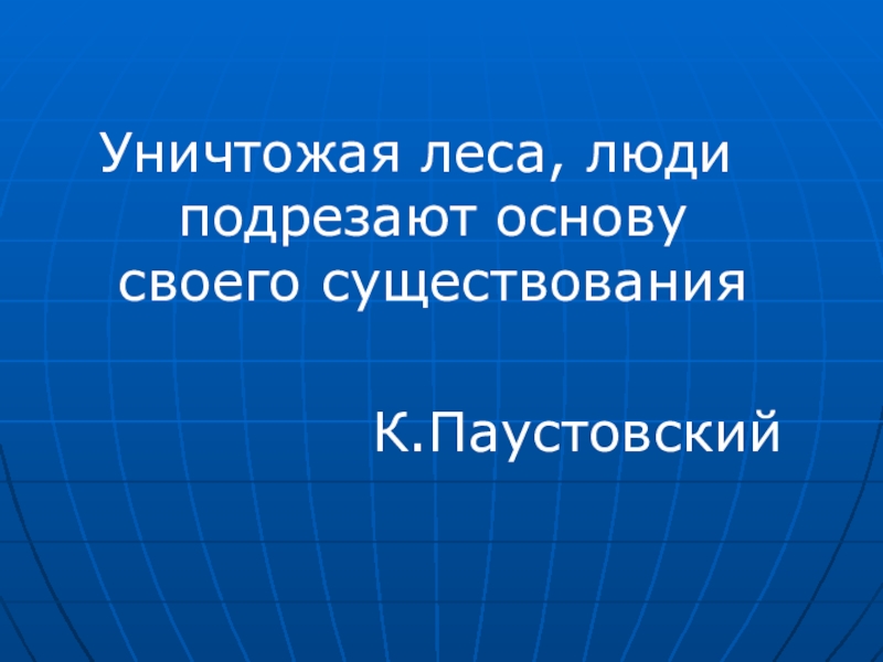 Уничтожая леса, люди подрезают основу своего существования         К.Паустовский