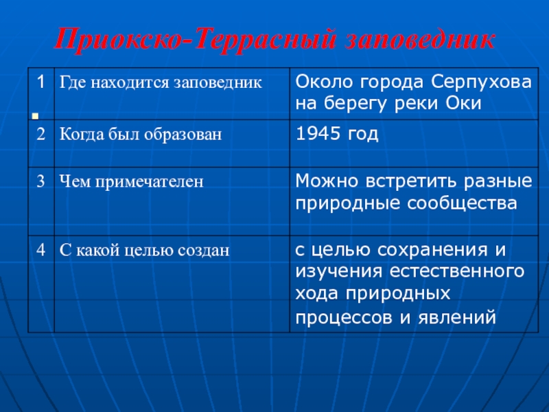 Ильменский заповедник 3. Приокско-террасный заповедник 4. Кандалакшский заповедник