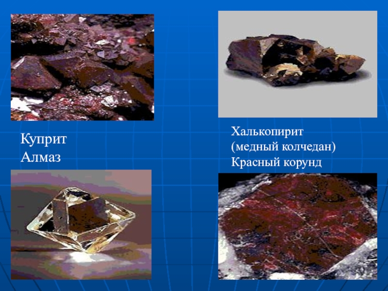 Куприт Алмаз Халькопирит (медный колчедан)Красный корунд
