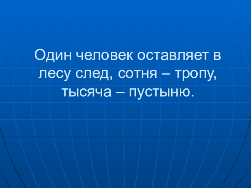 Слайд 28Один человек оставляет в лесу след, сотня – тропу, тысяча –