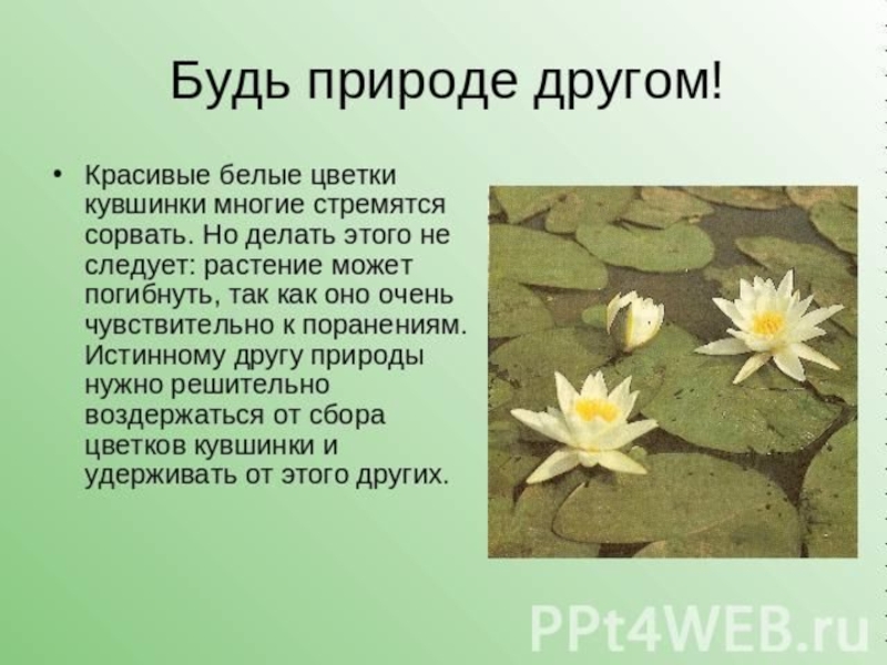 Презентация, доклад по окружающему миру на тему Кувшинка белая