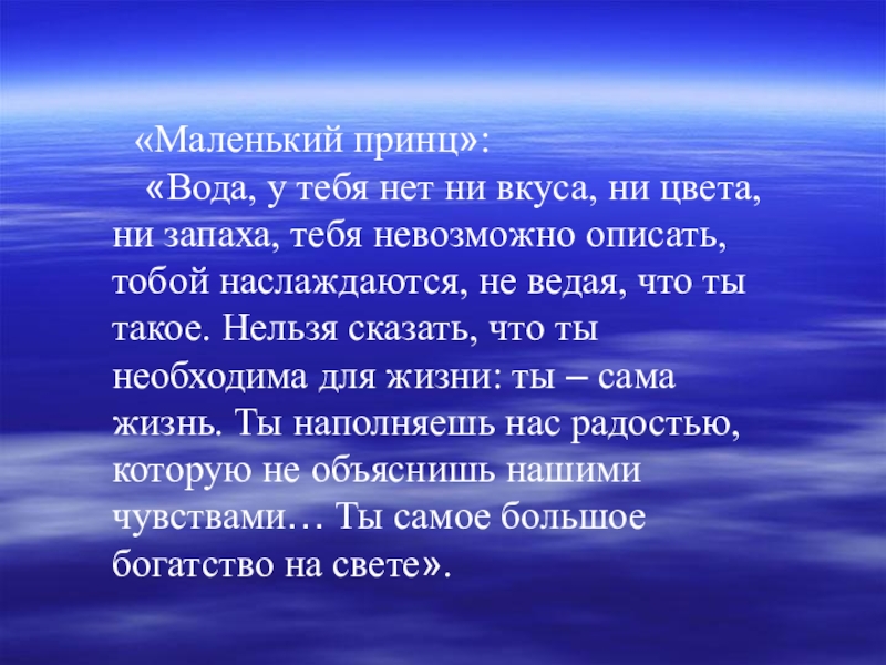 Нет на земле напитка лучше, чем стакан холодной чистой воды. (В.Песков)