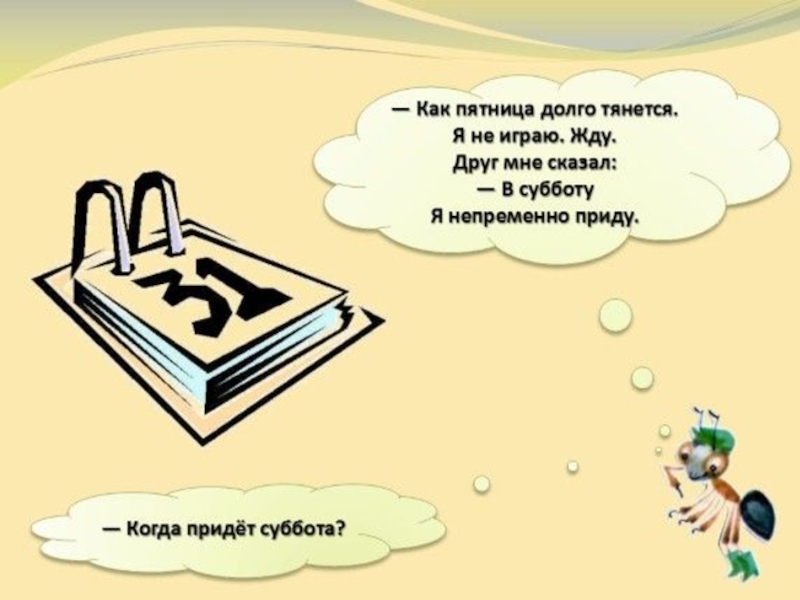 Презентация по окружающему миру на тему Когда придёт суббота? Время и его течение (1 класс) Детские презентации
