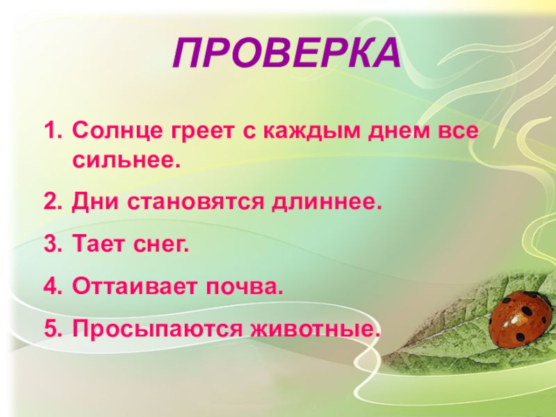 ПРИЗНАКИ ВЕСНЫ В НЕЖИВОЙ ПРИРОДЕ