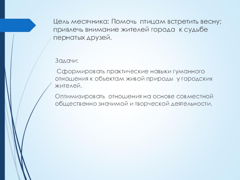 Сформировать практические навыки гуманного отношения к объектам живой природы у городских жителей.