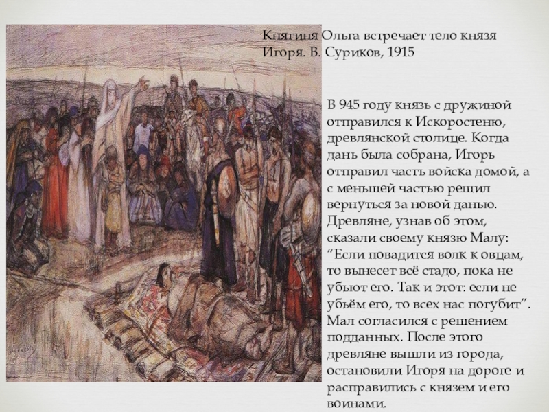 Княгиня Ольга встречает тело князя Игоря. В. Суриков, 1915