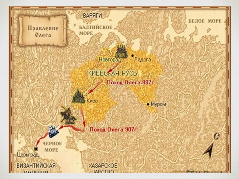 Слайд 13Киевский князь Олег с дружиной отправился в боевой поход на юг.