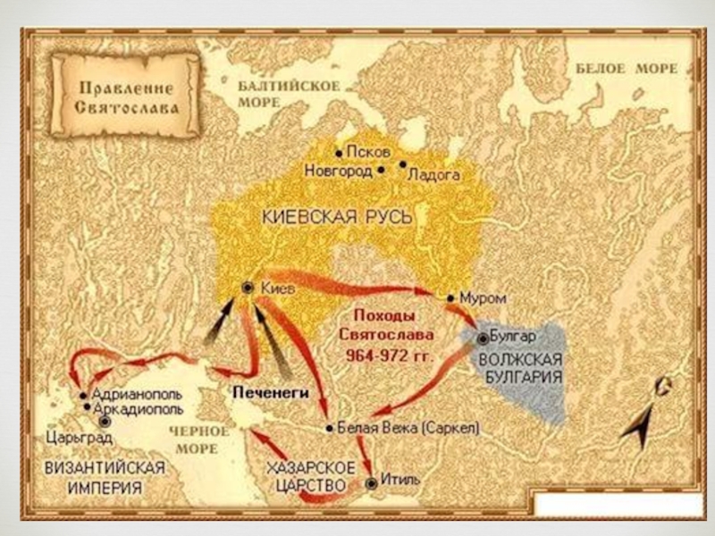 Слайд 34О первых самостоятельных шагах Святослава «Повесть временных лет» сообщает с 964