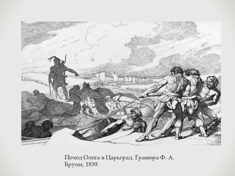 Слайд 14Поход Олега в Царьград. Гравюра Ф. А. Бруни, 1839.