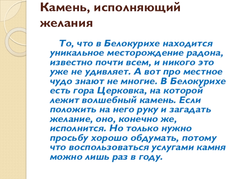 Камень, исполняющий желания    То, что в Белокурихе находится уникальное месторождение радона, известно почти всем,
