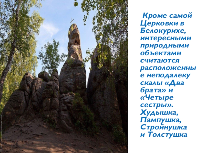 Слайд 8  Кроме самой Церковки в Белокурихе, интересными природными объектами считаются