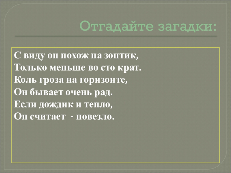 Это сайт презентаций, где можно хранить и обмениваться своими презентациями, докладами, проектами, шаблонами в формате PowerPoint с другими пользователями. Мы помогаем школьникам, студентам, учителям, преподавателям хранить и обмениваться учебными материалами.