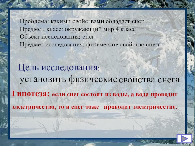 Снег − это вид атмосферных осадков, выпадающих на земную поверхность, состоящий из мелких кристаллов льда