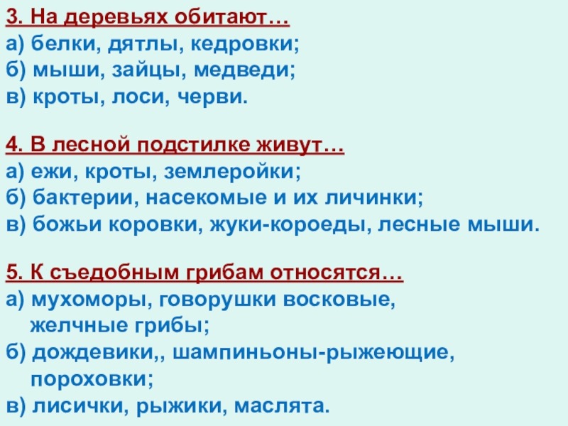 в) божьи коровки, жуки-короеды, лесные мыши.