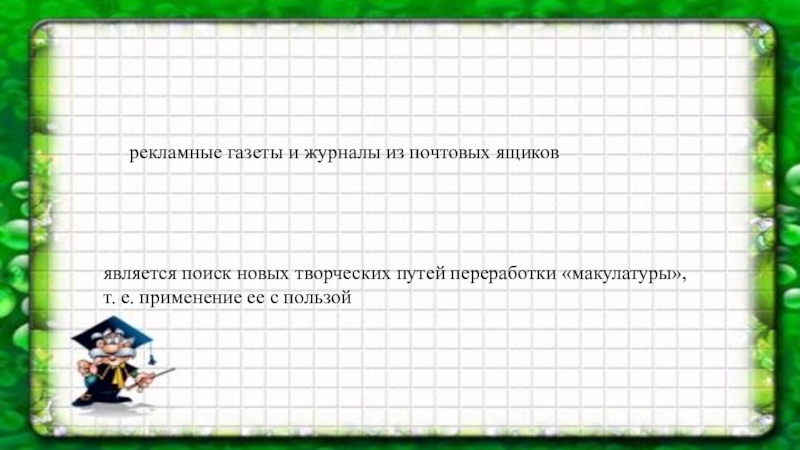 поиск новых творческих путей переработки «макулатуры», т. е. применение ее с пользой