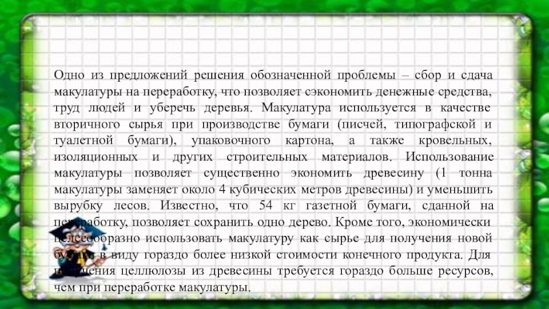и экологической пользе не уступает первому. Использование макулатуры как материала для творческих поделок целесообразно в целях экономии семейного бюджета.