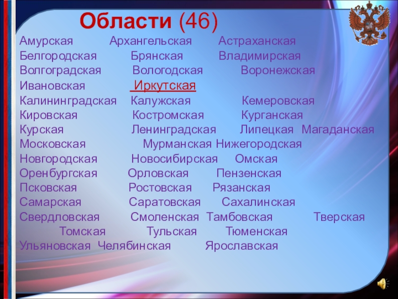 в) зеленый цвет ветвей кедра - цвет надежды, радости, изобилия. Символизирует также уникальную флору и фауну, лесные богатства области.