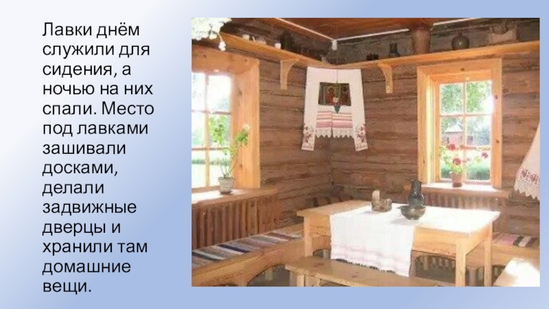 8) деревянные лавки?