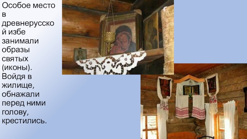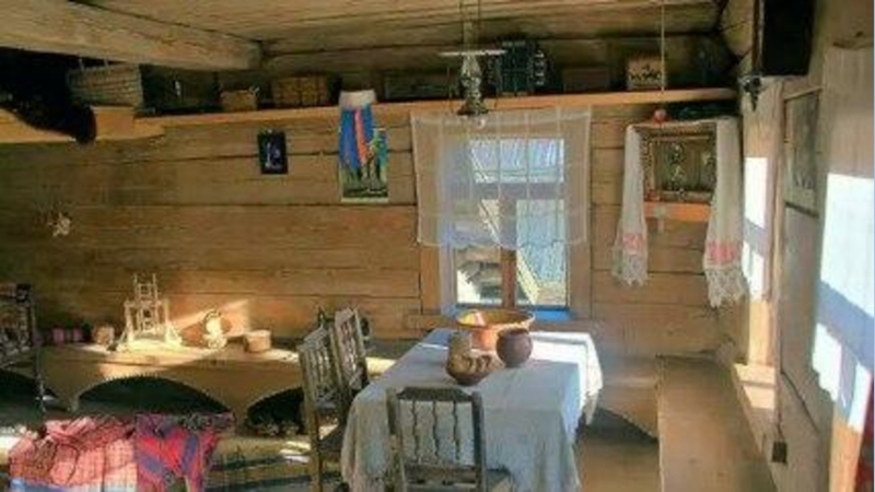 Полати-лежанка, устроенная между стеной избы и русской печью.