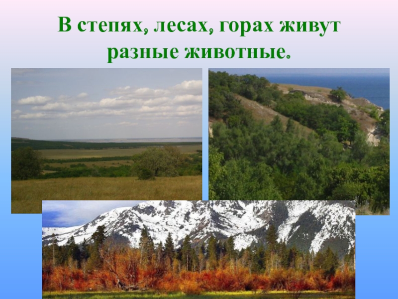 Слайд 37В степях, лесах, горах живут разные животные.