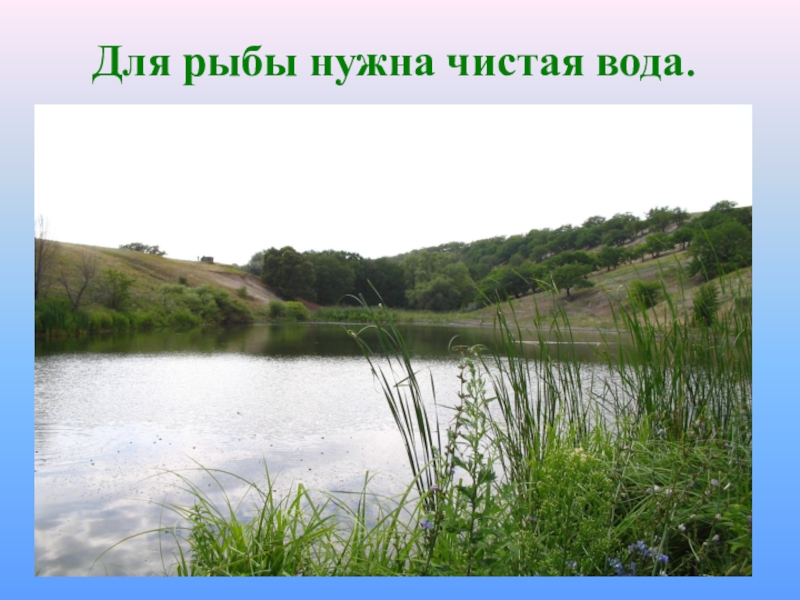 Слайд 36Для рыбы нужна чистая вода.