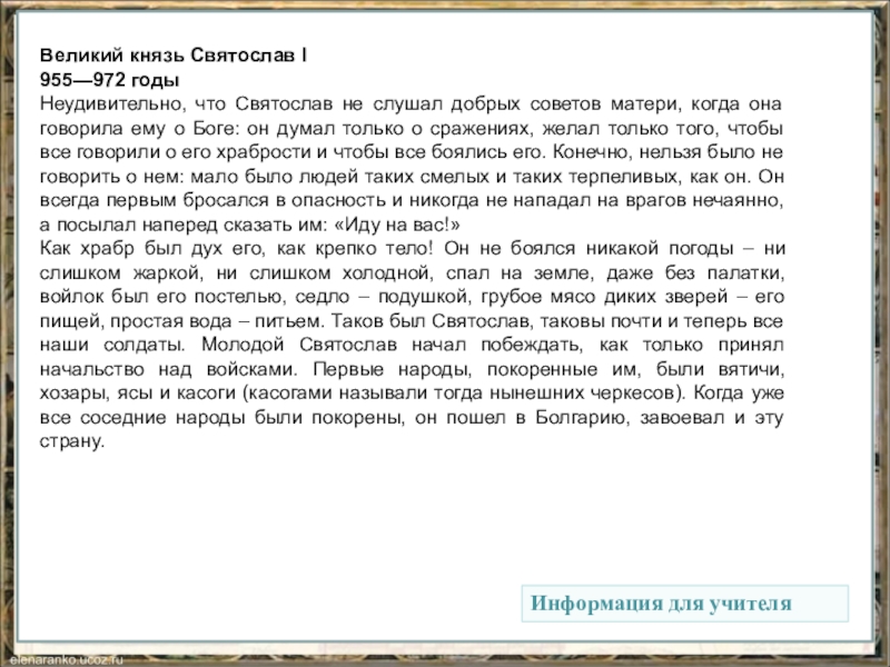 Информация для учителя