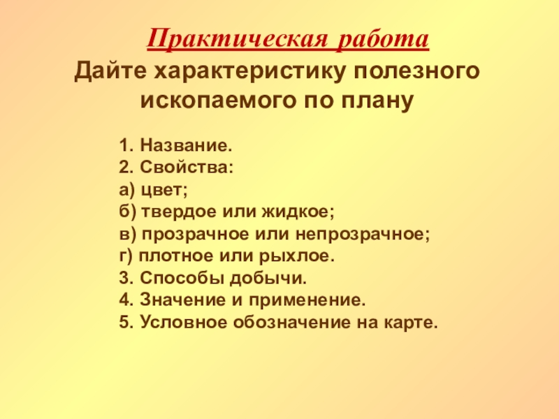 Дайте характеристику полезного ископаемого по плану