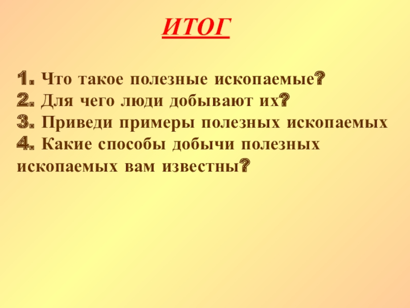 Попробуйте сделать вывод, что называют полезными ископаемыми?