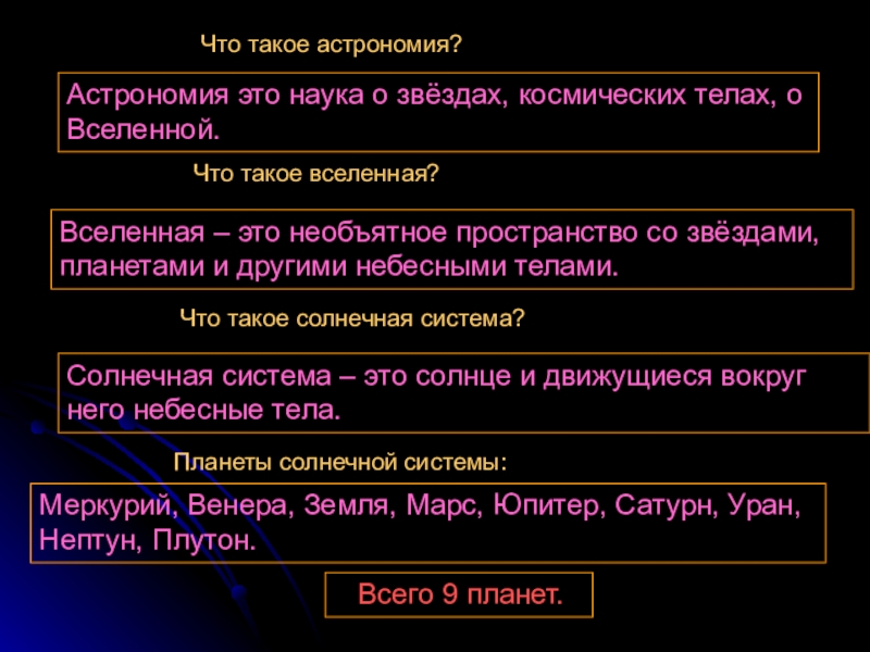 Астрономия это наука о звёздах, космических телах, о Вселенной.