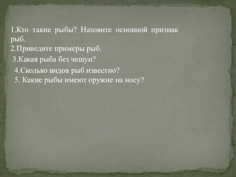 1.Кто такие рыбы? Назовите основной признак рыб.
