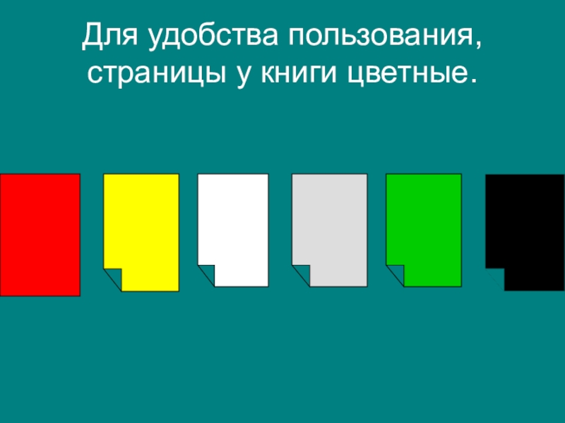 Слайд 7Для удобства пользования, страницы у книги цветные.