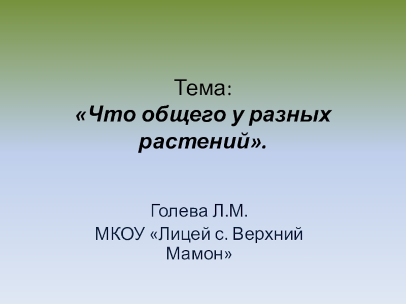 Тема: «Что общего у разных растений». Голева Л.М. МКОУ «Лицей с. Верхний Мамон»