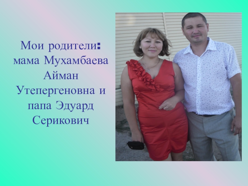 Слайд 6Мои родители: мама Мухамбаева Айман Утепергеновна и папа Эдуард Серикович