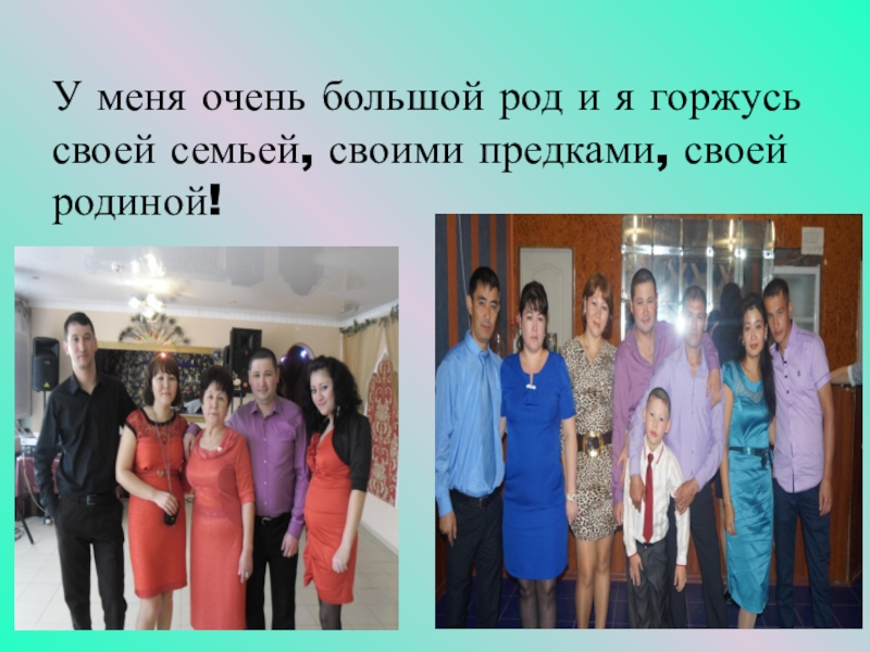 Слайд 10У меня очень большой род и я горжусь своей семьей, своими