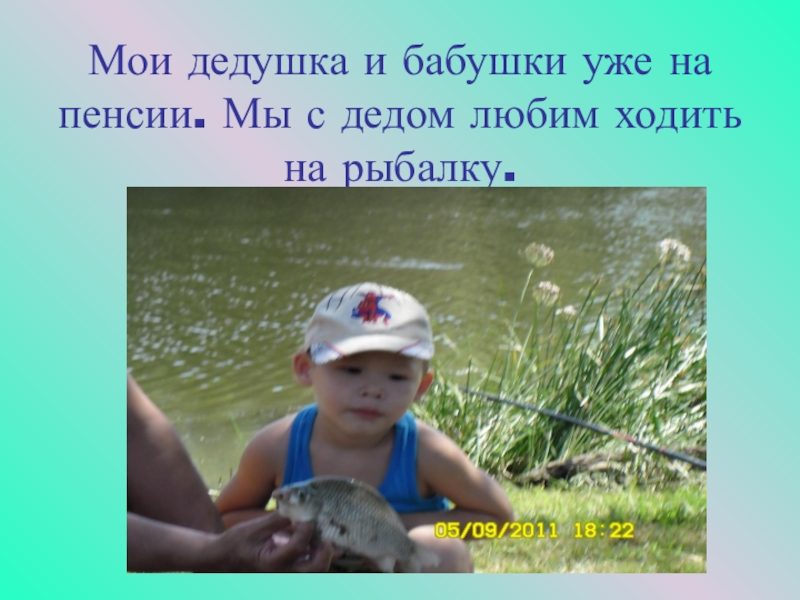 Мои дедушка и бабушки уже на пенсии. Мы с дедом любим ходить на рыбалку.