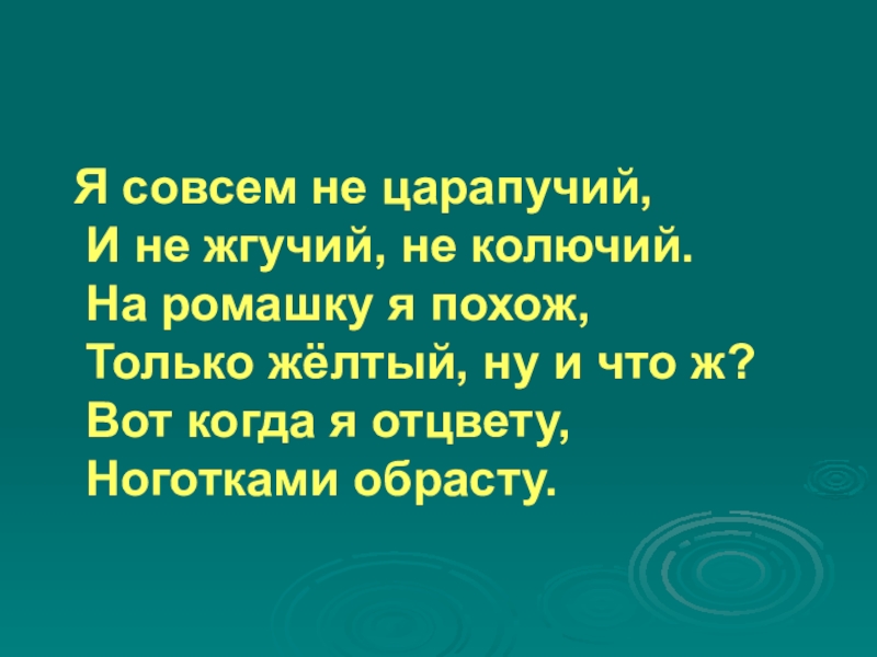 Я совсем не царапучий, И не жгучий, не колючий. На ромашку я