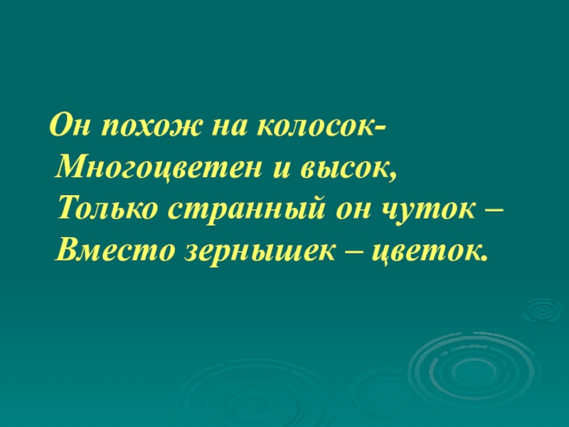 Он похож на колосок- Многоцветен и высок, Только странный он чуток – Вместо зернышек – цветок.