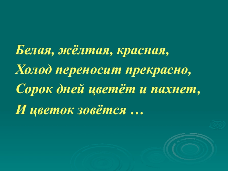 Белая, жёлтая, красная,Холод переносит прекрасно,Сорок дней цветёт и пахнет,И цветок зовётся …