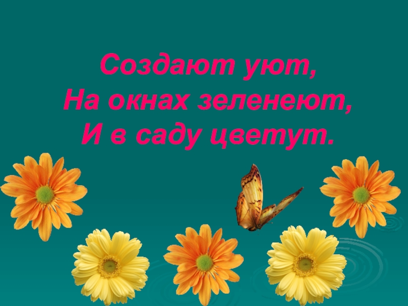 Слайд 2Создают уют, На окнах зеленеют, И в саду цветут.
