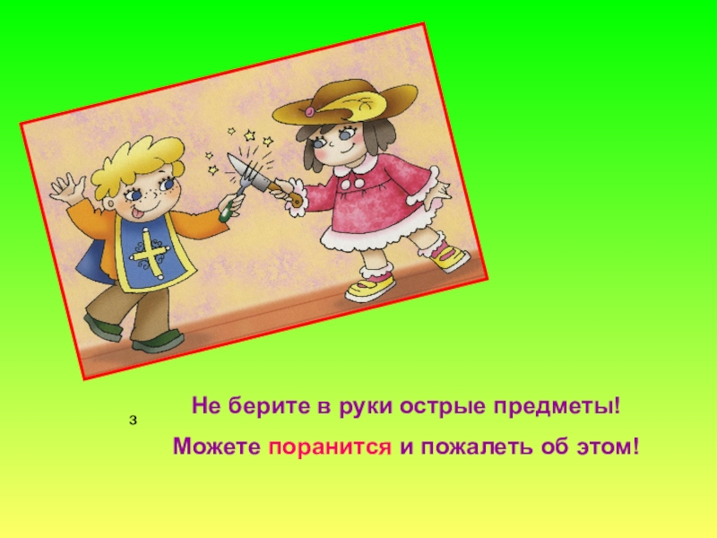зНе берите в руки острые предметы!Можете поранится и пожалеть об этом!