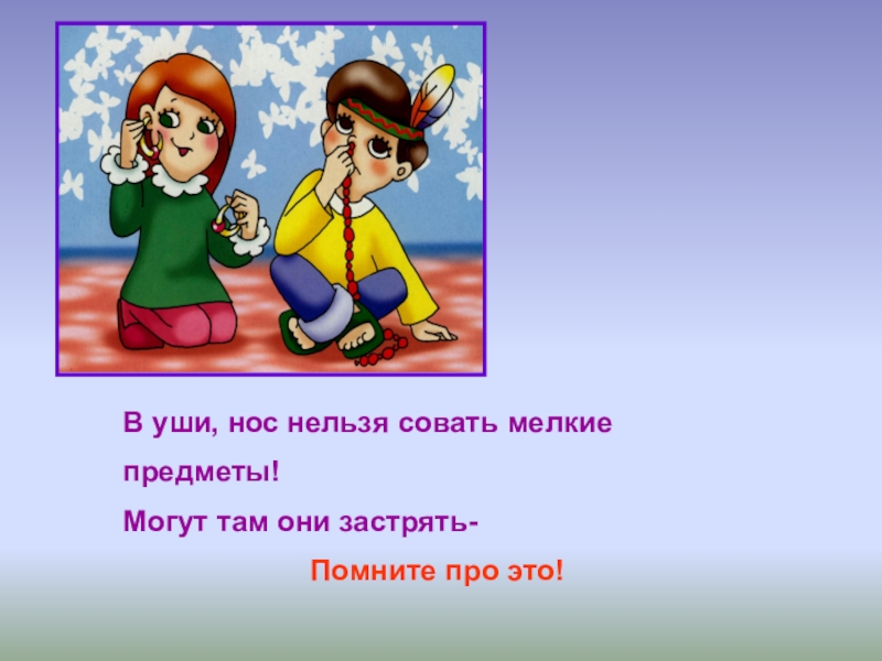 Слайд 16В уши, нос нельзя совать мелкие