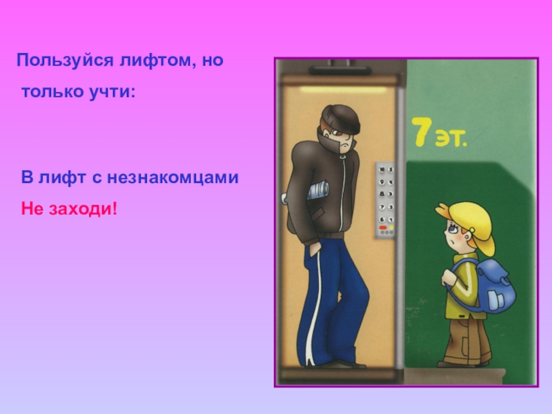 Пользуйся лифтом, но только учти:В лифт с незнакомцами Не заходи!